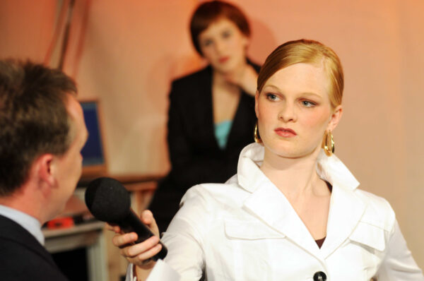 Ein neugieriger Spießbürger ist der weltberühmten Kriminalschriftstellerin Korbes, einer kraftmeierischen „Über-Hemingway“, durch alle Sündenbabel der Welt nachgejagt. Endlich stellt er die Nobelpreisträgerin in einem Luxushotel. Mit buchhalterischer Akribie hält er ihr vor, alle in ihren Romanen vorkommenden Morde seien nicht erfunden – so viel Fantasie sei nicht möglich…