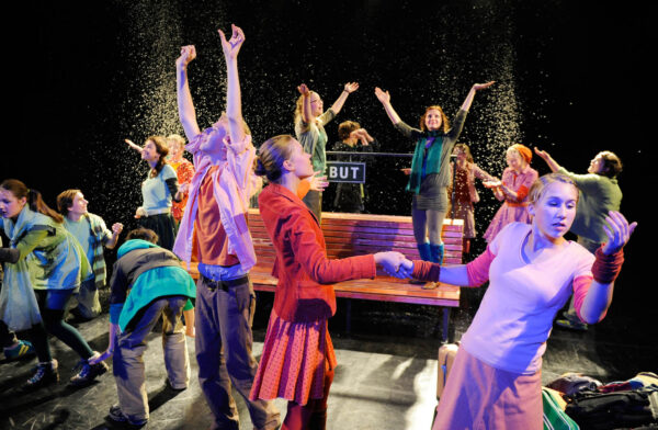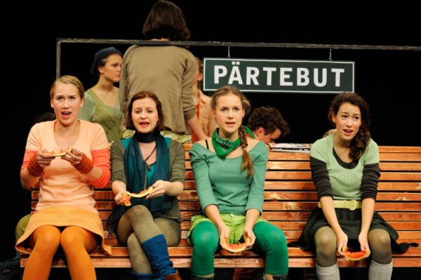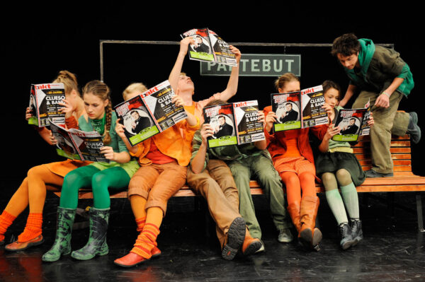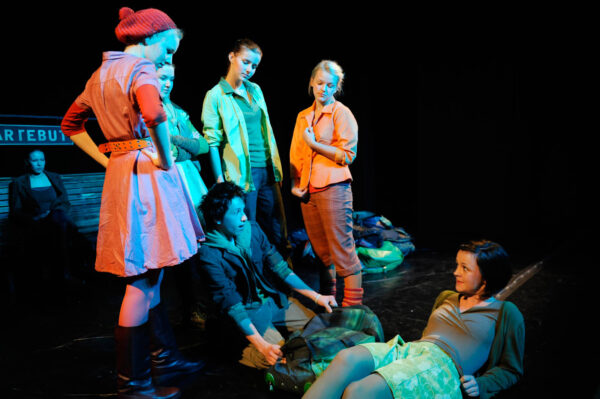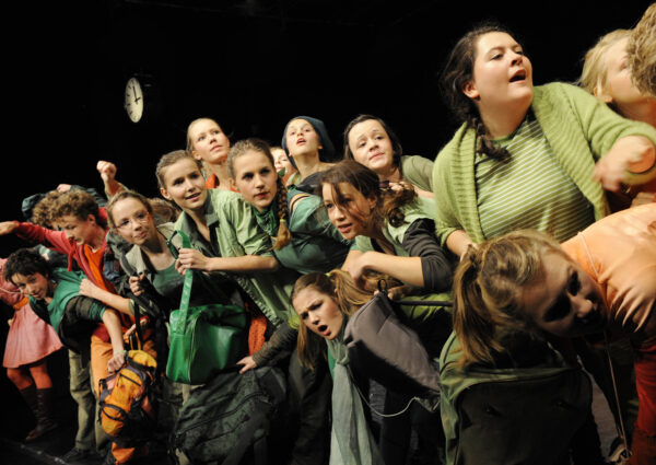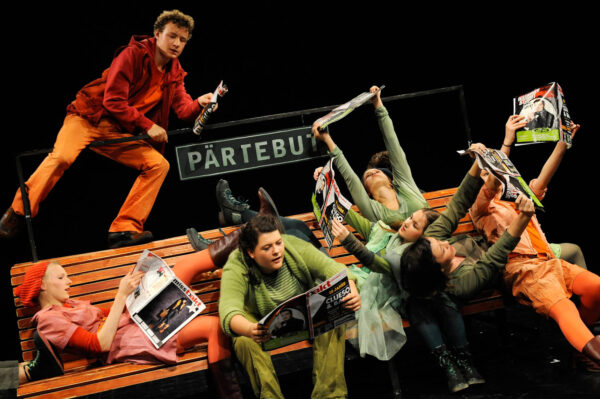 Endlich Klassenfahrt – doch der Zug hat Verspätung. Man fängt an, sich die Zeit zu vertreiben, den Bahnhof zu erkunden, miteinander zu reden. Dadurch ergeben sich ganz unterschiedliche Situationen, aber auch theatrale Räume für Rückblenden und Vorausblicke. Bahnhof – ein Ort, der von jeher für Abfahrt und Ankunft steht, aber auch für Warten, Innehalten und Begegnung; in ABGEFAHREN ist er uns deshalb auch Folie für den Aufbruch junger Leute, für die Inventur ihrer Gefühle, ihrer Hoffnungen, Probleme und Wünsche ans – ach! – so große Leben.