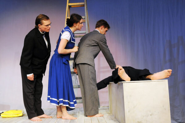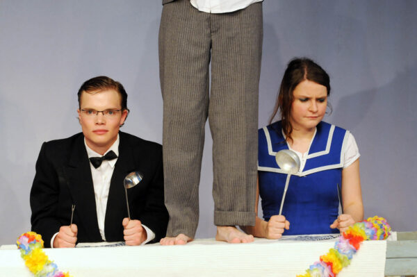 Das Meer, ein Floß, drei Herren. Die Lebensmittel sind alle. Nichts mehr da. Um zu überleben, muss einer von ihnen gegessen werden. Wie die drei mit dem Problem umgehen und wie sie es lösen wird auf sehr hintersinnige, diabolische Weise gezeigt. Der Weg zum Essen führt über Wahlkämpfe, Abstimmungen und geschickt eingefädelte Argumentationen – Appelle an Menschlichkeit, Moral, Kameradschaftlichkeit und ähnlich hohe Werte menschlichen Zusammenlebens, denen man sich nicht entziehen kann. Nur: es geht ums Gegessenwerden! Das Stück ist eine genaue, bitterböse Parabel auf Macht, Intrigen und die Manipulierbarkeit des Menschen.
