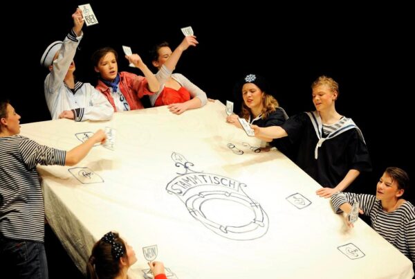 Keiner kennt mehr ’ne Ballade – schade! Dabei sind Balladen doch spannende Minidramen um Macht und Helden, Liebe und Tod; also genau das Richtige für das schaurig-schöne Spiel mit ihnen. Fünf „berühmte“ Balladen hatten wir uns ausgesucht und theatralisch aufs Korn genommen, mal heiter, mal ironisch, aber immer ernsthaft und bis zum bitteren Schluss. Als wir am Ende dann alles verschachtelten, da kamen wir über das Schachteln auch noch zum Schach. Und so waren u.a. mit von der Partie: ein nebulöser König, ein großherziger Obstbauer & eine schöne Dame mit kalter Hand.
