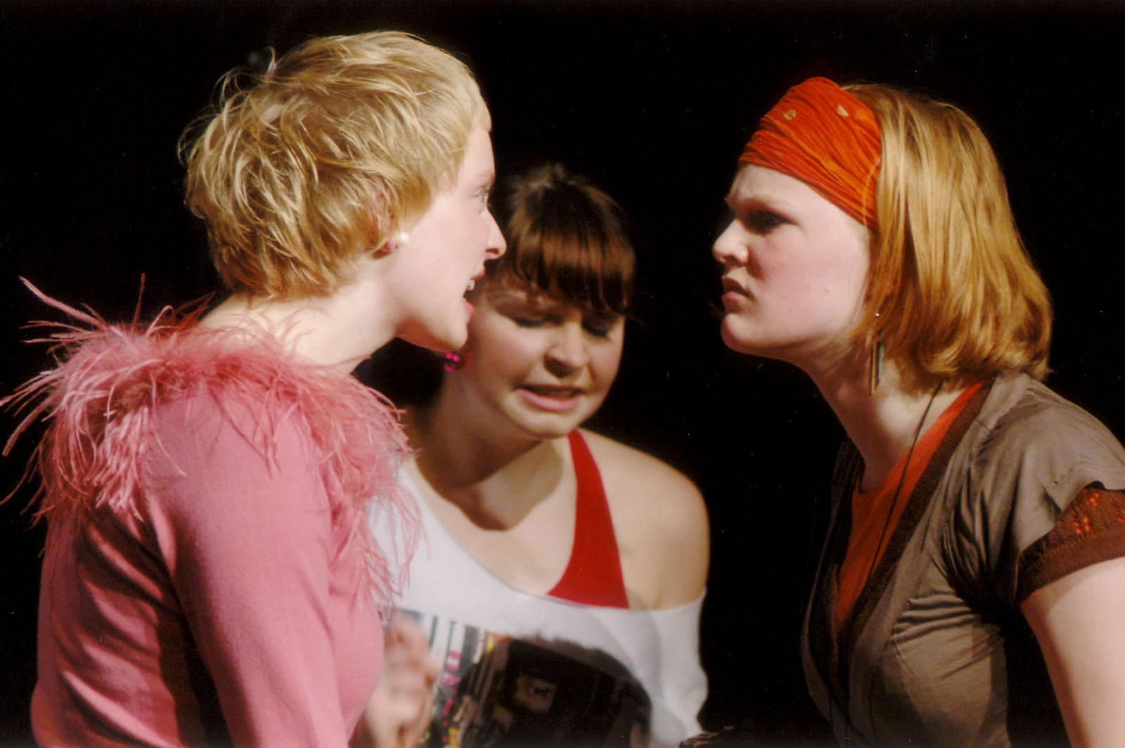 Um vielen Darstellerinnen die Möglichkeit des Spielens zu geben, wurden die drei weiblichen Figuren doppelt besetzt. Nach der ersten Inszenierungsarbeit in der Szenencollage „Total normal“ erhielten nun die Darstellerinnen die Möglichkeit, in Monologen und Dialogen ein gesamtes Stück zu tragen. Die männliche Rolle wird von einem älteren Jugendlichen gespielt, wobei auch für diese Rolle Proben mit einer Doppelbesetzung stattfanden.
