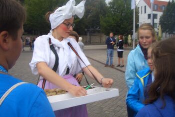 Anlässlich des Festivals, das alle 15 Jahre in Thüringen stattfindet, erarbeitete die Schotte ein Spektakel, welches alle 400 teilnehmenden Schüler und Offizielle liebevoll in Thüringen empfing, sie zum Mitspielen einlud, kleine Köstlichkeiten gegen theatrale Kleinkunst verschenkte und alle zu einem gemeinsamen Drumcircle auf dem Theatervorplatz vereinte.