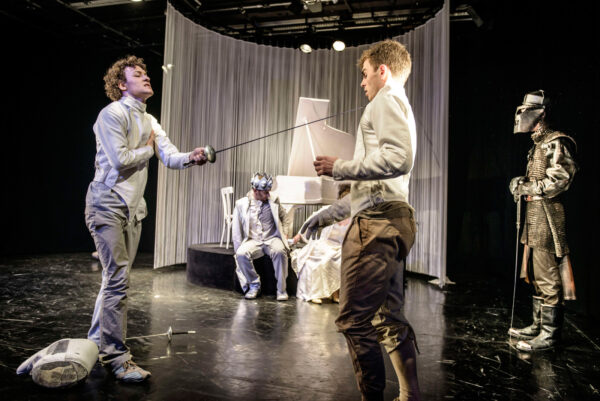 Gerade eben hat Prinz Hamlet noch seinen Vater zu Grabe getragen, da muss er seinen Onkel als neuen Mann der Mutter akzeptieren. Irgendetwas ist hier faul. Aber was? Niemand teilt seine Wahrnehmung. Er will handeln, den Tod des Vaters rächen, aber wie? In seiner Unsicherheit wendet er sich gegen alles und jeden. – Ein mörderisches Spiel beginnt und reißt alle mit in den Abgrund. Die Welt ist aus den Fugen.