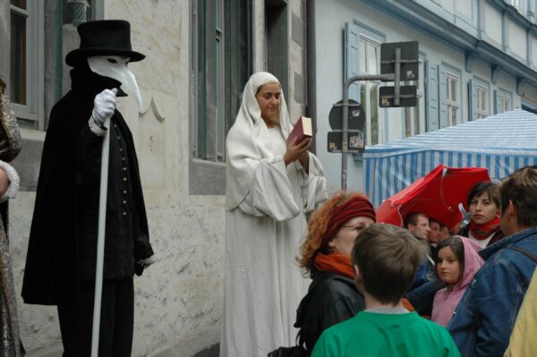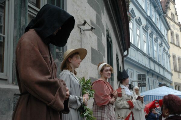 Adam Ries, Napoleon, Caroline von Dacheröden, Allegorie Frau Waid, Pestarzt von Erfurt, Sidonia von Zäunemann, Bonifatius, Martin Luther, Angela Merici.