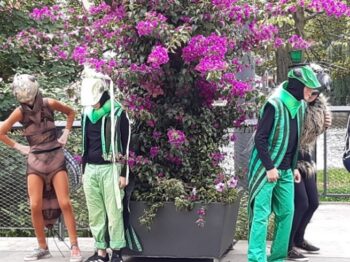 Eine Gruppe von 12 Jugendlichen arbeitete unter theaterpädagogischer Anleitung zum Thema Insekten. Die Jugendlichen konnten sich für ein Insektenkostüm entscheiden und erspielten sich in vielen Proben Gangarten, Fortbewegungsmöglichkeiten und Handlungen, die vorübereilende Passanten irritierten. Immer wieder fanden Einzelaktionen der DarstellerInnen statt, die sich mit Gruppenarrangements abwechselten. So entstand ein Insektenschwarm, der sich durch die Innenstadt vor Laufpublikum präsentierte.