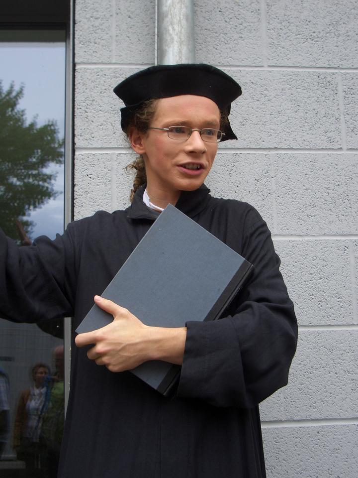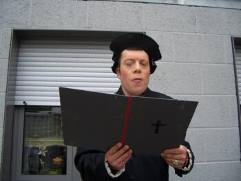 Ziel unseres Aktionstheaters war es, Luther in seiner rhetorischen Bandbreite und im Original zu Gehör zu bringen, Auszüge aus seinen andächtigen Predigten ebenso wie seine derben Schmähschriften. Dazu haben wir den „einen“ Luther aufgesplittert auf „mehrere“ Luther, ihn gewissermaßen geklont. Jeder Einzelne sollte für einen bestimmten Luther stehen und doch in der Summe aller den „einen“ näher bringen. Wir wählten dazu Texte aus Luthers Briefen, Predigten und Schriften, die wir für unsere Aktion bearbeitet haben.