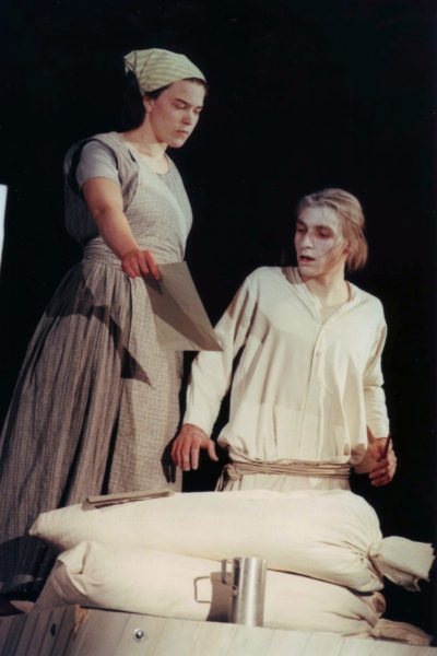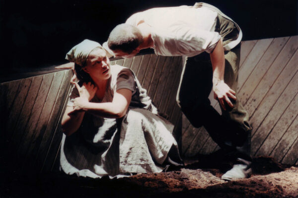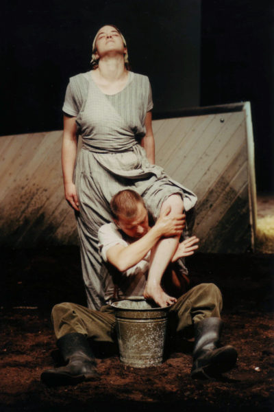 Die Welt: mythisch und fern, die Atmosphäre fast düster. Fast holzschnittartig erschließt sich der Besucher ein starkes Stück: „Messer in Hennen“, derzeit in Erfurts Theater die SCHOTTE zu sehen. geschrieben hat es der Schotte David Harrower, dem mit der Premiere 1997 ein Bestseller der Dramatik. Und daß für starkes Theater Raum auch in der kleinsten Hütte ist, bewies man in Erfurts Schottenstraße erneut. Zu diesem Zweck wurde der junge Berliner Regisseur Matthias Thieme verpflichtet, der die brisante Dreiecksgeschichte spannend in einem Abend der verheißungsvoll neuen Töne erzählt. Kein Boulevard- Theater und schon gar keine Spaßgesellschaft wird hier in Szene gesetzt. nein, Theater im besten Sinne des Wortes ist geboten.