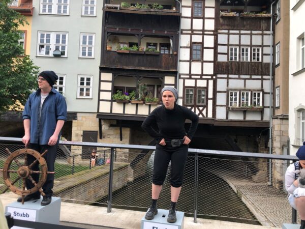 Minimonologe und Zwiegespräche aus unseren aktuellen Inszenierungen, zeigen wir auf kleinen Bühne unter freiem Himmel. Das vorbeischlendernde Publikum wird Antigone, Tartuffe, Macbeth und Co via Fußklingel zum „spielen bringen“ können. Mal glühend herzzerreißend, mal liebreizend kampfeslustig, ganz nach dem Motto: „Lasst mich den Löwen auch noch spielen“ – bringen unsere jungen Darstellenden ein Stück „SCHOTTE Bühne“ auf die Straße.