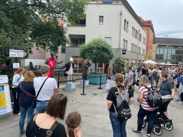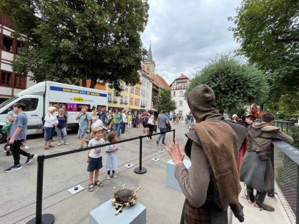 Minimonologe und Zwiegespräche aus unseren aktuellen Inszenierungen, zeigen wir auf kleinen Bühne unter freiem Himmel. Das vorbeischlendernde Publikum wird Antigone, Tartuffe, Macbeth und Co via Fußklingel zum „spielen bringen“ können. Mal glühend herzzerreißend, mal liebreizend kampfeslustig, ganz nach dem Motto: „Lasst mich den Löwen auch noch spielen“ – bringen unsere jungen Darstellenden ein Stück „SCHOTTE Bühne“ auf die Straße.