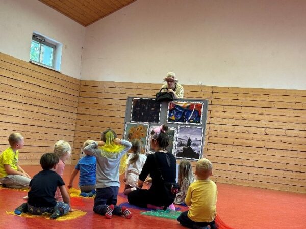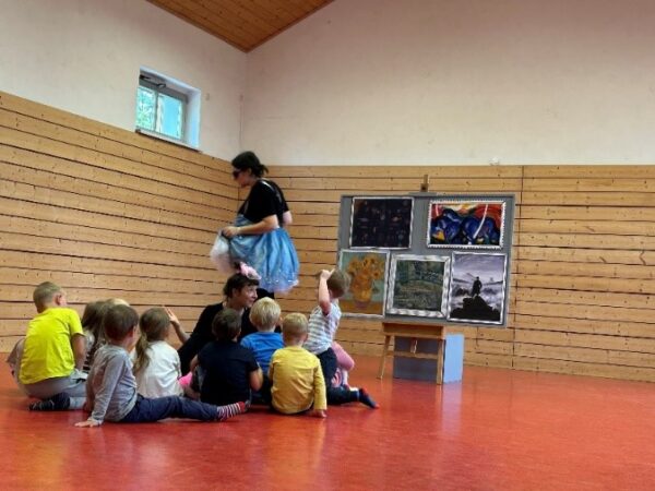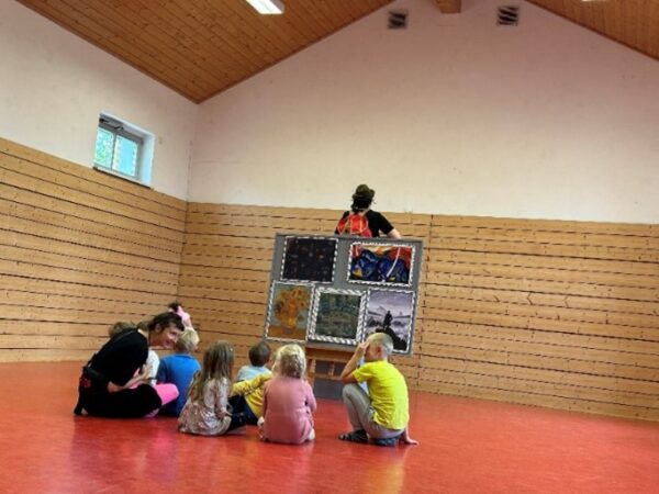 Die Geschwister Dörte und Daisy hat es in ein echtes Kunstmuseum verschlagen! Dort, wo die „superschönen und sehr berühmten Bilder hängen“, weiß Dörte. Die Farben und Formen haben sie bereits bewundert, den Pinselstrich bestaunt, doch dann passiert etwas Unvorhergesehenes: Dörte verschwindet in einem der Bilder! Daisy ist fassungslos und natürlich muss sie hinterher. Aber nicht allein. Nein, dafür braucht sie dringend ein paar fantasievolle Kinder, die sich mit Wasserfarben und Filzstiften auskennen. Und dann geht es los: die Reise durch die BILDERWELTEN.