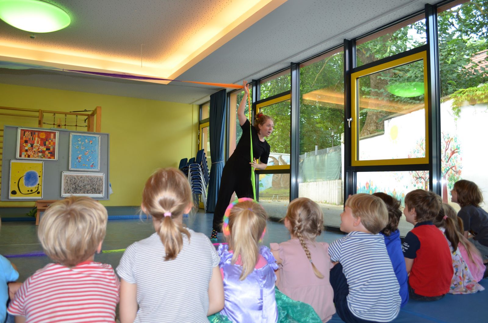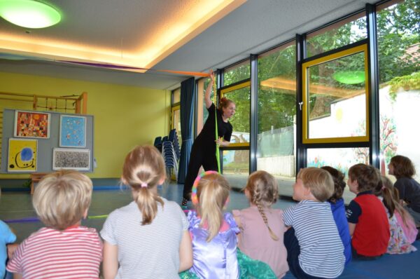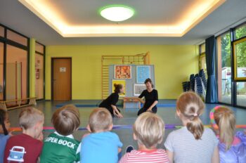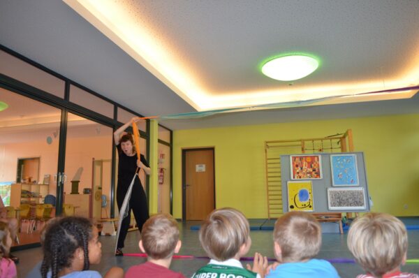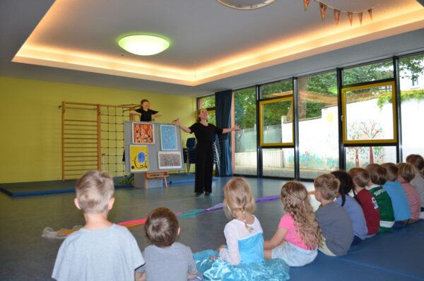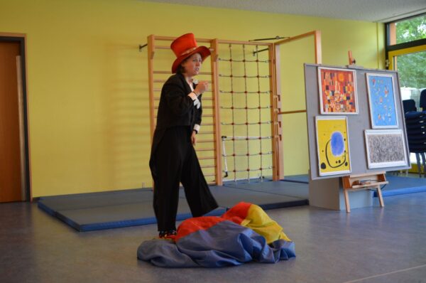 Pia ist sich sicher: „Das ist Krickel Krakel!“, was Lou da neuerdings auf großformatige Leinwände malt. „So` n Quatsch“, erklärt daraufhin die große Schwester, das ist „abstrakte Kunst!“ „Ab… was?“ Der gemeinsame Blicke auf ein paar bekannte abstrakte Kunstwerke, soll Pia beim Verstehen helfen. Aber so einfach ist das nicht! Nein, da braucht es schon dringend ein paar fantasievolle Kinder, die sich mit Farben und Formen auskennen. Die können ganz sicher das sehen, was Pia nicht sieht! Und dann geht sie los: die wilde Reise durch die abstrakten Bilderwelten, die im gemeinsamen Spiel mehr und mehr Gestalt annehmen. Für die Kinder gilt es, sich in die jeweiligen Bilder zu fantasieren, dort große und kleine Bekanntschaften zu machen und zu helfen, wo es nur geht. Sie werden zusehen und reagieren, eigene Ideen entwickeln und gemeinsam im Spiel umsetzen – also das Theater in seiner Ganzheit erfahren. Am Ende sind sich sicher alle einig: So ein abstraktes Bild steckt voller ungeahnter Abenteuer!