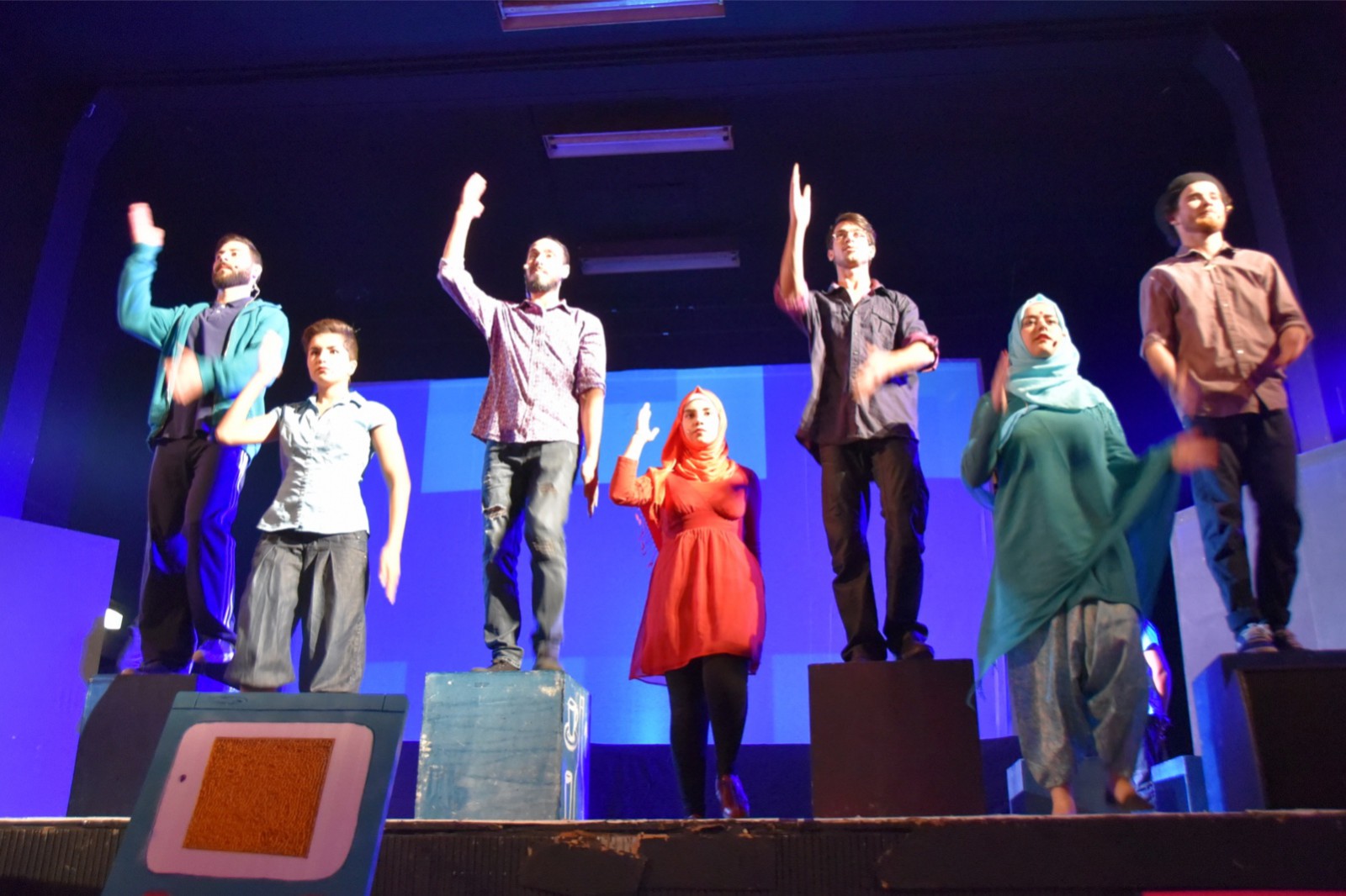 Das vom Ensemble selbsterarbeitete Theaterstück „Move & Wait“ verbindet Erlebtes mit Fiktivem aus der Sicht verschiedener Kulturkreise – über Schauspiel, Tanz, Musik und ein eigenes Fotografie-Projekt.