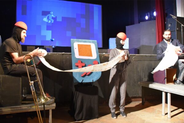 Die Frauen-Band BbOriOn aus Weimar bringt den „Pixelsound“ (via Gameboy) auf die Bühne und kreiert mit Saz-Musiker Essa Abed den Soundtrack für „Move & Wait“.