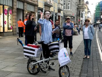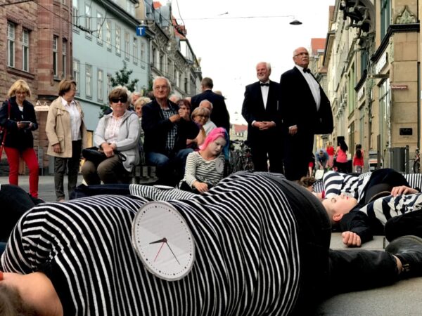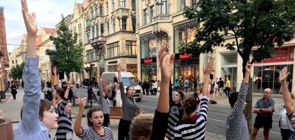Dieses Projekt fokussiert die Erschließung und theatrale Auseinandersetzung mit dem öffentlichen Raum. Hierbei werden unterschiedliche Formen des Aktionstheaters, des Straßentheaters aber auch des unsichtbaren Theaters angewendet.