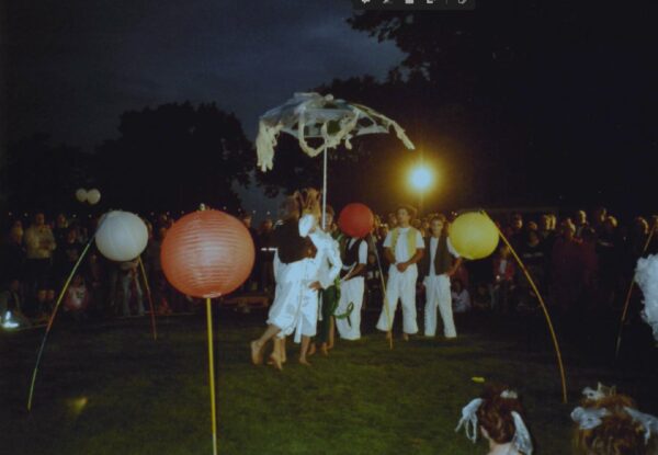 Aus Anlass des Lichterfestes gestaltete die Straßentheatergruppe wieder eine anschauliche Performance, die in den Abendstunden wiederholt vor dem Publikum vorgestellt wurde. Verantwortlich für die Präsentation war die Straßentheatergruppe, die nicht nur durch zauberhafte Kostüme und Maske überzeugte, sondern vor allem mit einem eindrucksvollen Bewegungsspiel. Nach der Performance „bevölkerten“ die Jugendlichen die EGA bei einem großen Umzug über das Gelände.