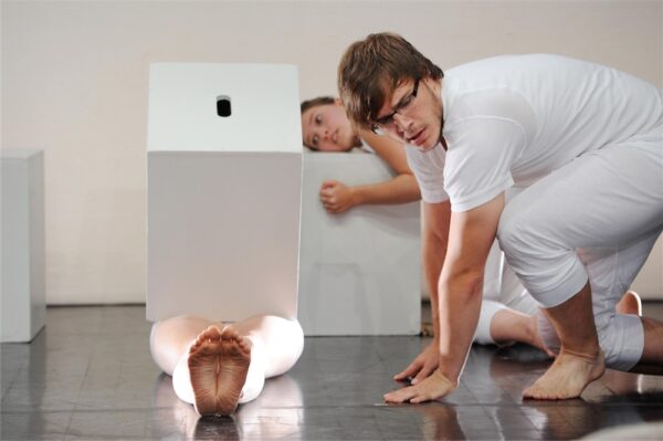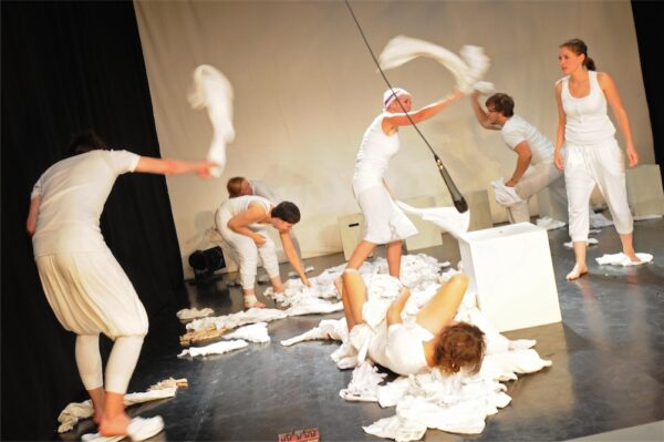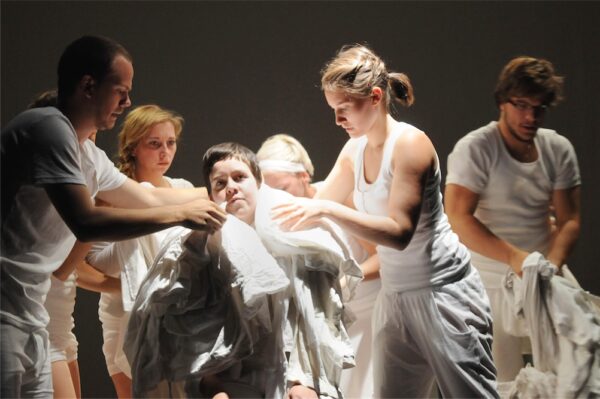Ausgehend von Büchners Original haben sich acht SpielerInnen auf die Suche nach Texten und Bildern gemacht, die sie heute mit Thema und Figur des WOYZECK verbinden. Ihre Erkundungen flechten sie unter Büchners Szenensplitter, sodass das Stück beständig zwischen Original und heutigen Bezügen hin und her pendelt. Es entsteht ein Mosaik von Ausruf und Ansage, Wortwechsel und Selbstgespräch. Eins aber bleibt: „Er ist ein interessanter Kasus. Subjekt Woyzeck.“