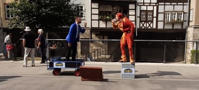 Das Erfurter Krämerbrückenfest wurde im Jahr 2021 aufgrund der Coronapandemie abgesagt – ebenso die Eröffnung mit der stadtbekannten Figur Till Eulenspiegel. Um Till Eulenspiegel dennoch in Erscheinung treten zu lassen, wurde mit drei Spieler*innen ein Straßentheater-Walkact entwickelt. Till Eulenspiegel zog am 27.07.2021 mit einer beweglichen Mini-Bühne und zwei theatralen Begleitern durch die Erfurter Innenstadt. An unterschiedlichen öffentlichen Spots wurden kurze Spielszenen präsentiert, welche die Schwierigkeiten mit digitalen Kommunikationsformen humoristisch thematisierte.
