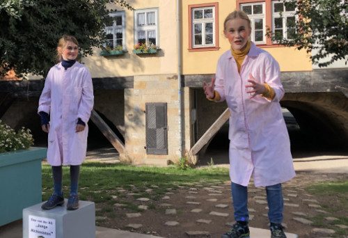 Zum 250. Geburtstag von Johann B. Trommsdorff lassen wir den Erfurter Apotheker und noch 13 weitere Figuren zu Wort kommen. In augenzwinkernden Monologen und Dialogen bringen wir Trommsdorffs Welt in vielen bunten Facetten auf die Straße. Die Passanten können auf unseren Minibühnen folgende Figuren erleben: Trommsdorff und seinen Lehrling, die ein wenig eingebildete Kranke, 2 junge Alchimistinnen, den schmerzerprobten Sportler, den coolen Typ, die Klosterfrau, die Vorsitzende des Apothekerverbandes, ein altes Erfurter Mütterchen, die Enkelin Trommsdorffs, eine engagierte Archivarin und 2 elegante Damen.