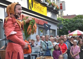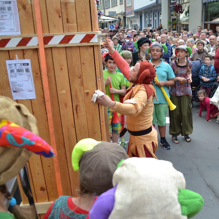 Das Erfurter Krämerbrückenfest wird seit vielen Jahren mit Til Eulenspiegel eröffnet. In diesem Jahr erhielt die Schotte die Gelegenheit, das Fest mit einem kleinen Theaterstück zu starten: Eulenspiegel erscheint schimpfend auf der kleinen Bühne am Benediktplatz. Er hat gerade seinen Esel in der Futterstraße aus den Augen verloren und muss sich nun seinem Ärger Luft machen. Er erzählt dem Publikum den Hergang der Dinge und wie er ihn gerade füttern wollte – mit Stotternheimer Möhren, die genau von dem Feld stammen, auf welchem Luther damals lag, als ihn fast der Blitz getroffen hätte – wie er die Stadt für den Verlust des Esels verantwortlich machen werde und warum es sich bei seinem Esel um ein besonders wertvolles Tier handle. Und er droht: Wenn der Esel weg ist, fällt das Krämerbrückenfest dieses Jahr aus! Mit diesem dramaturgischen Plot rankten sich kleine Szenen und freche Reden um Erfurt und seine Bürger. Insgesamt waren 26 Jugendliche und Kinder beteiligt. Das Stück wurde am 13. Juni 2014 auf dem Benediktplatz aufgeführt.